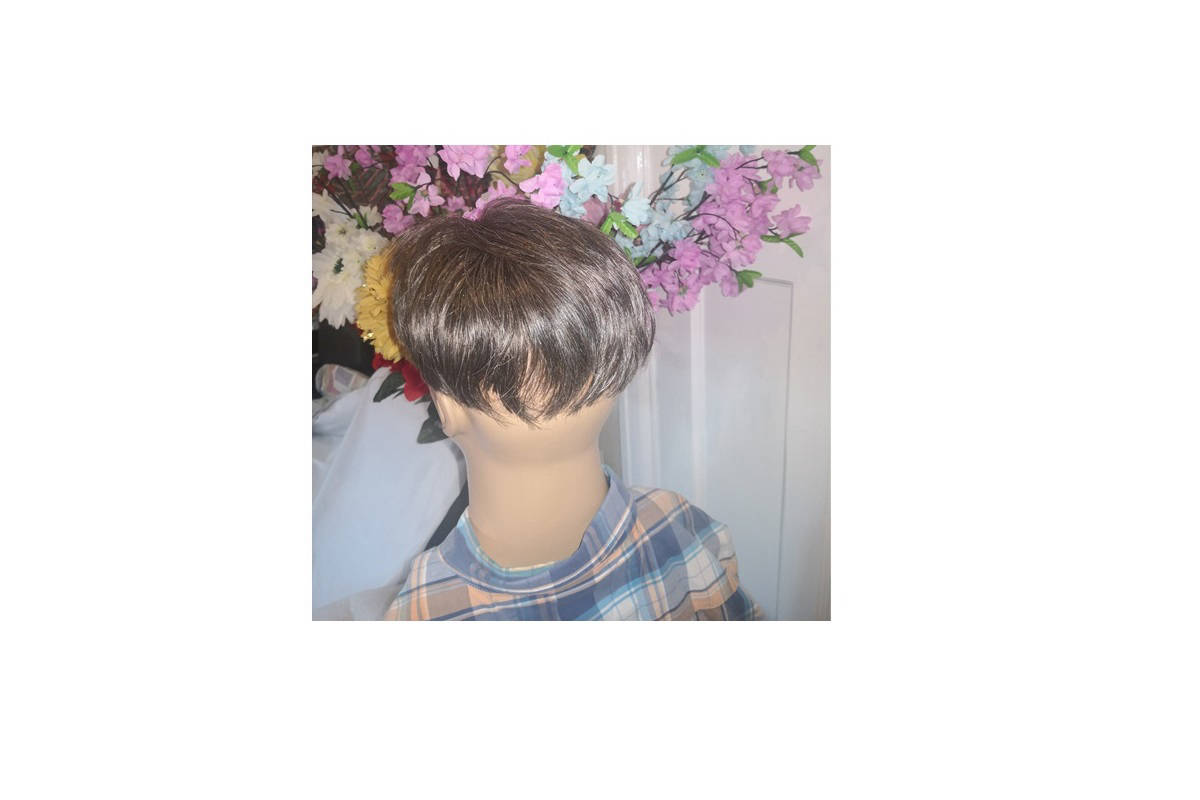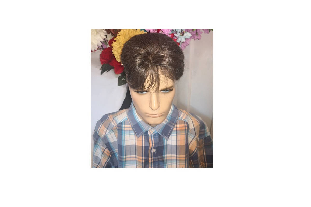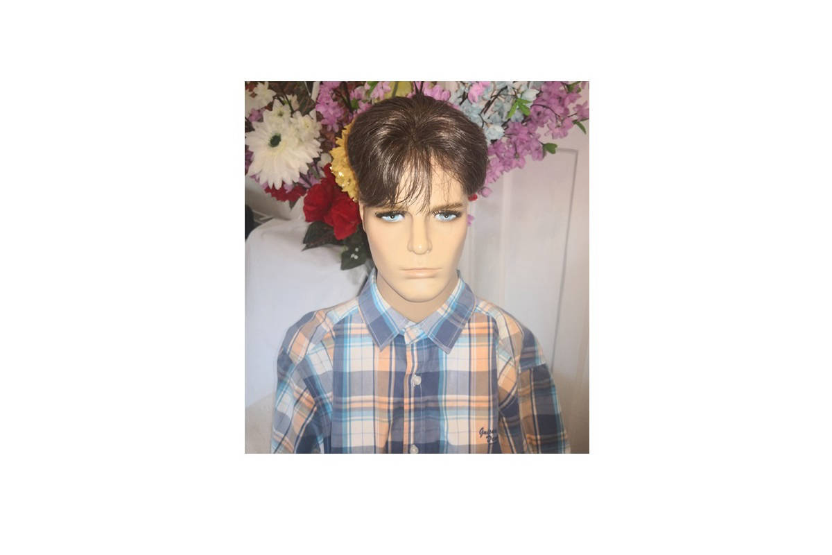 Toupee size :5.5" x 5.9"-Hair colour: grey/white