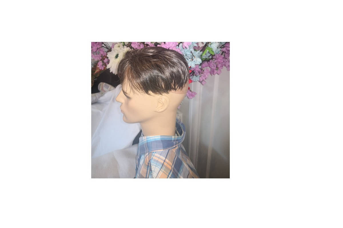 Chinese Virgin glue less toupee with silicone strip around the perimeter